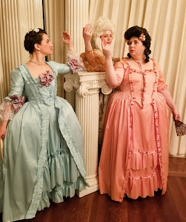 Here are some pictures from the event and below that, from the photoshoot, so you can see the dress a little clearer. I also included a video of me getting dressed. I already was laced into my stays but it gives a good idea. I love that it features the World's Ugliest Pocket, which I will now keep forever and use faithfully. It may be a completely not accurate fabric print but it is mine and I love it.
